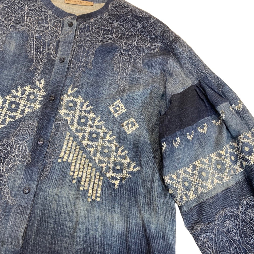 ERMANNO SCERVINO navy lace embroidered viscose blouse