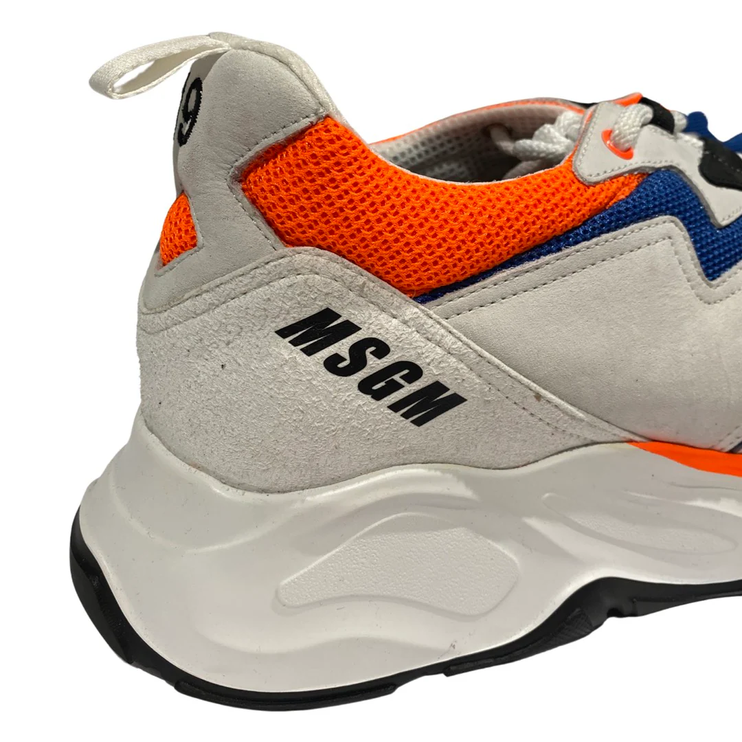 MSGM white, navy, and orange high platform trainers