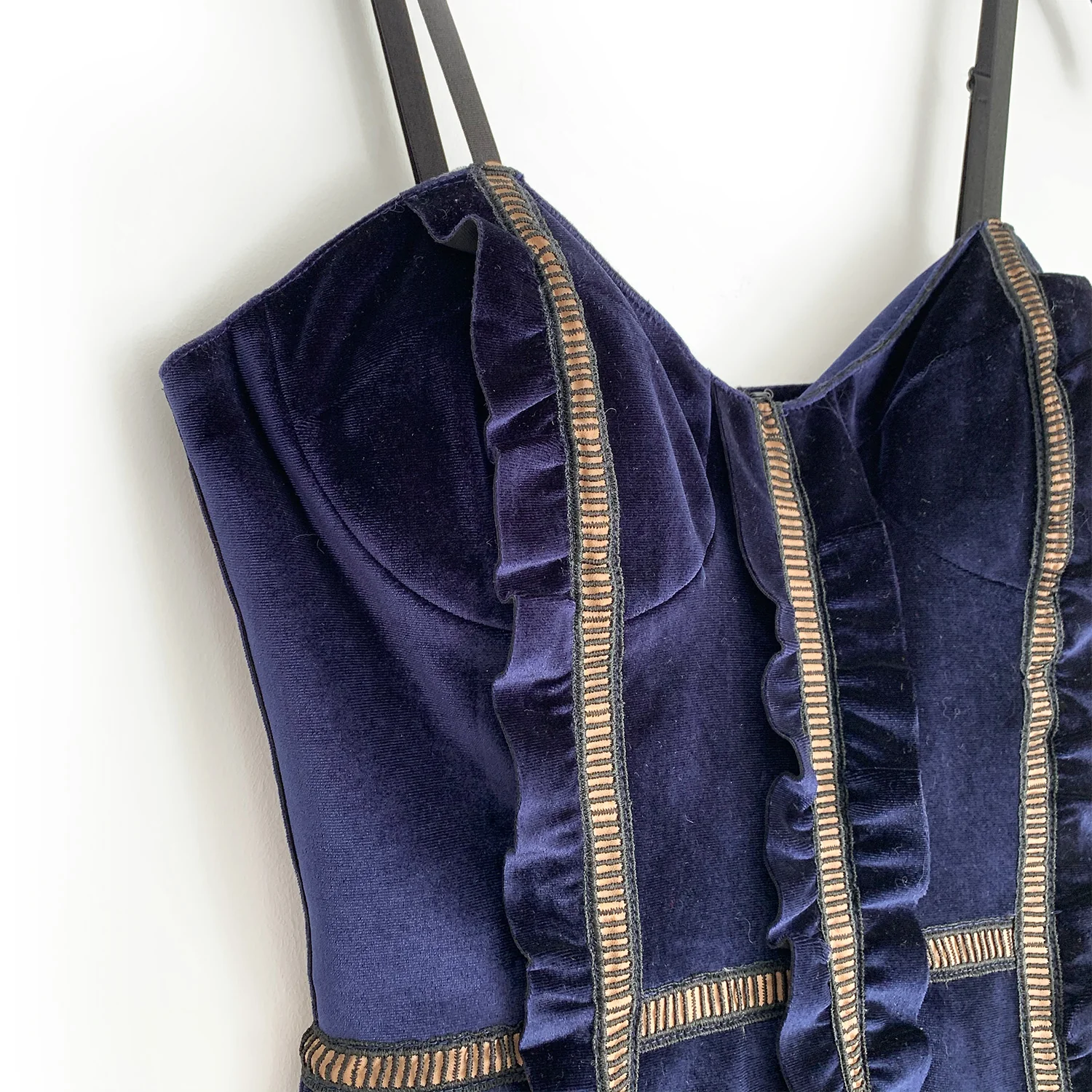 SELF-PORTRAIT Royal blue velvet dress with straps, back zipper and inside corset